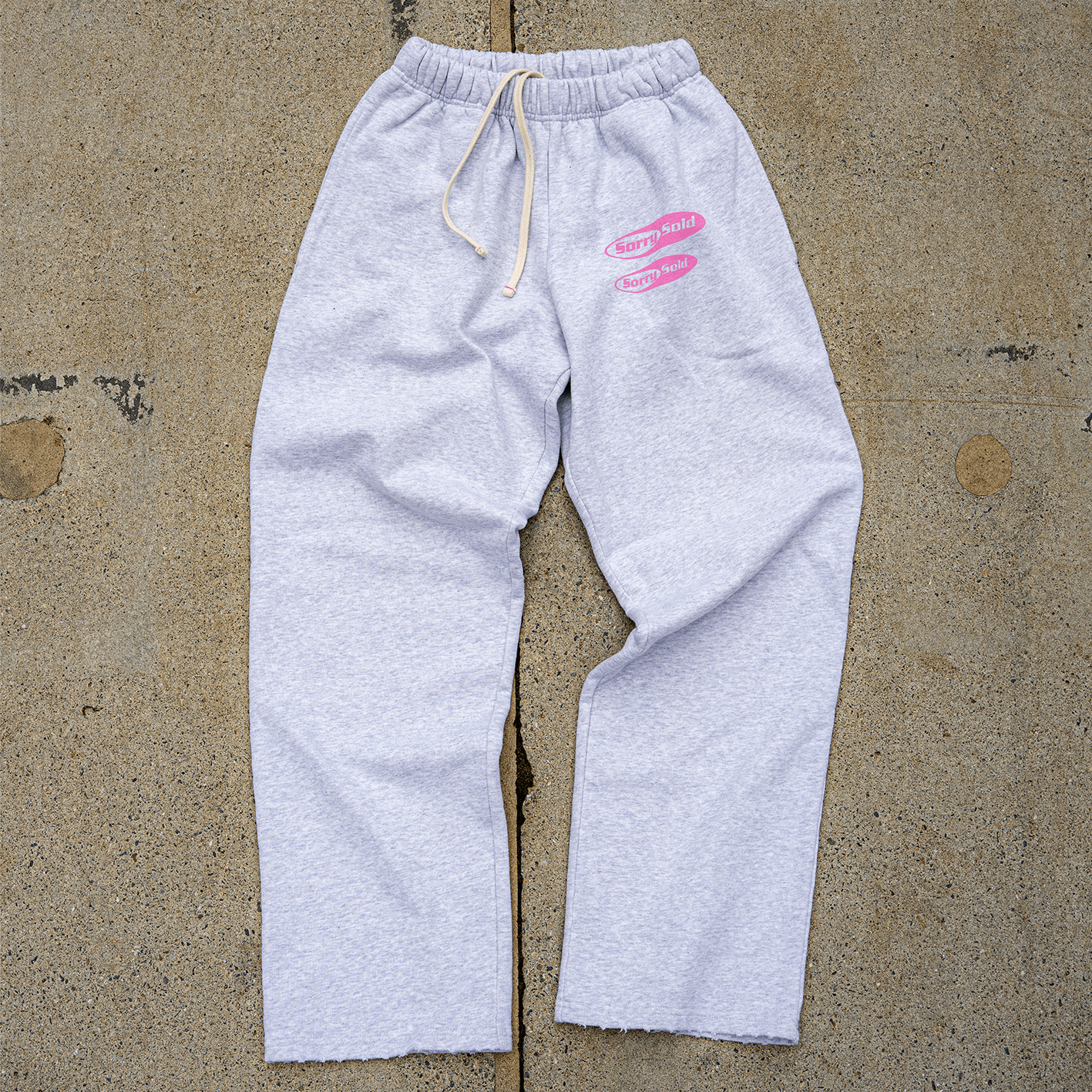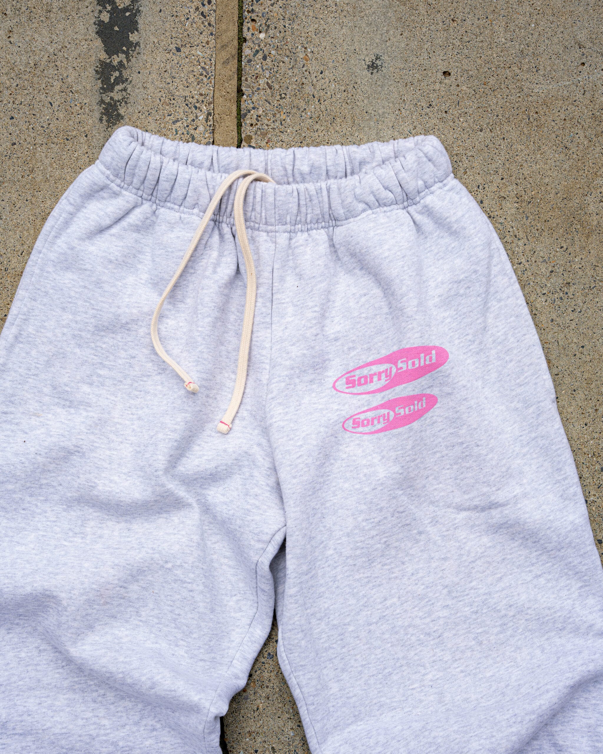_grey _100 % organic french terry cotton _brushed _pink front print _cream cords inside _distressed look _made in Portugal